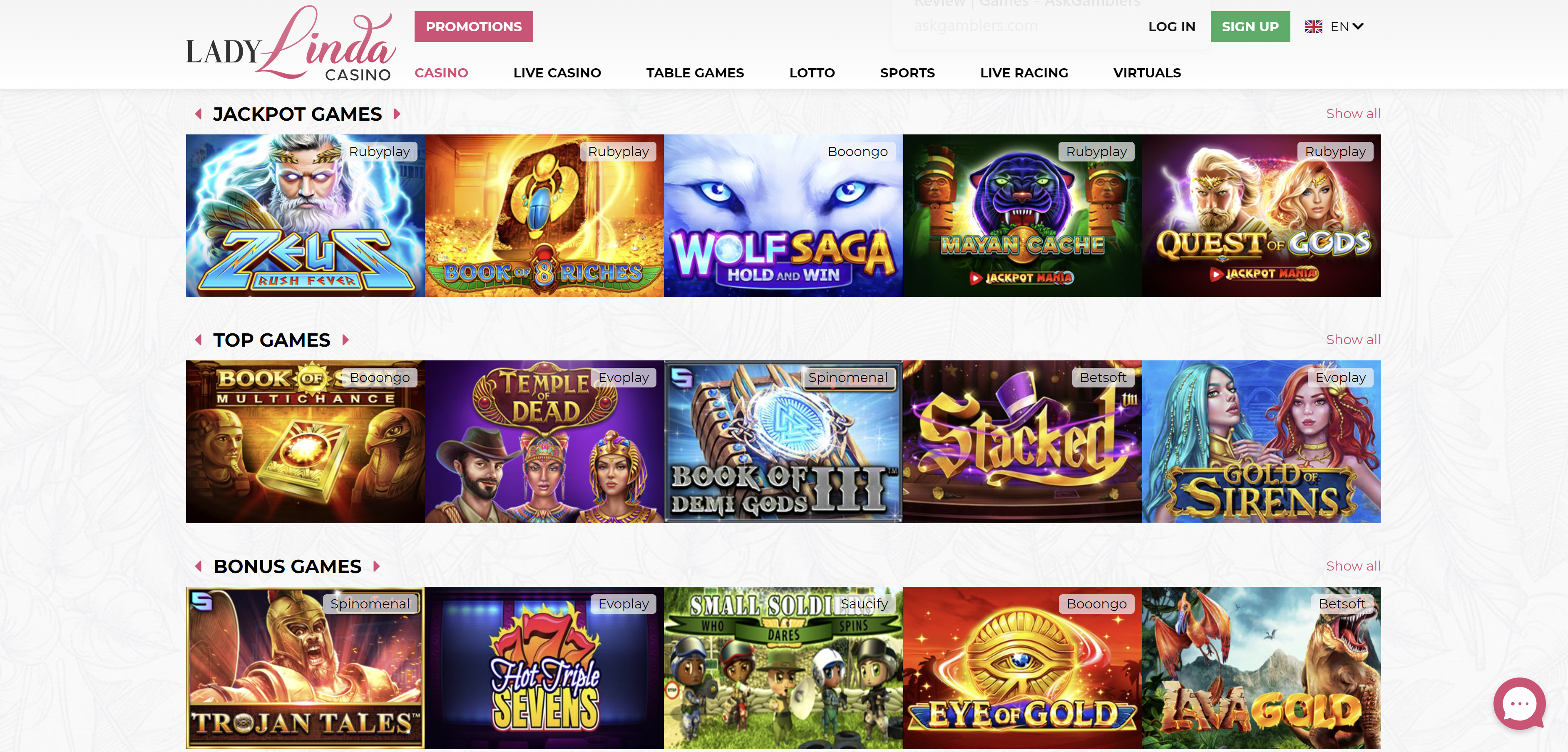 Lady Linda Casino offers an extensive range of games, including slots, bingo, poker, table and live games, and virtual games. When it comes to online slots, some of the best games include Book of the Divine and Take Olympus, among many others.