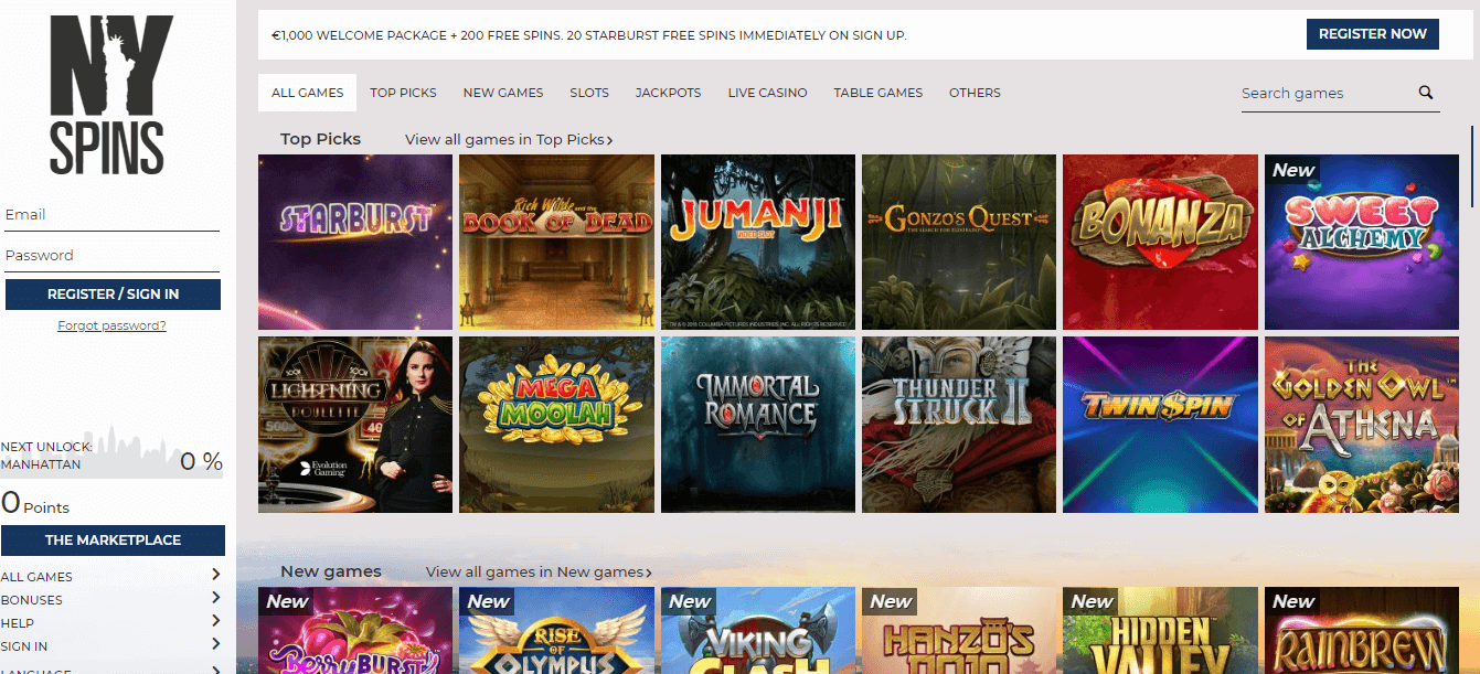 NYspins Casino games 🎮