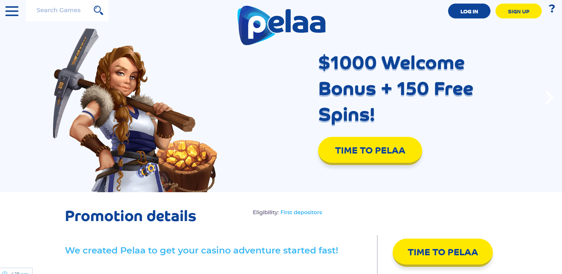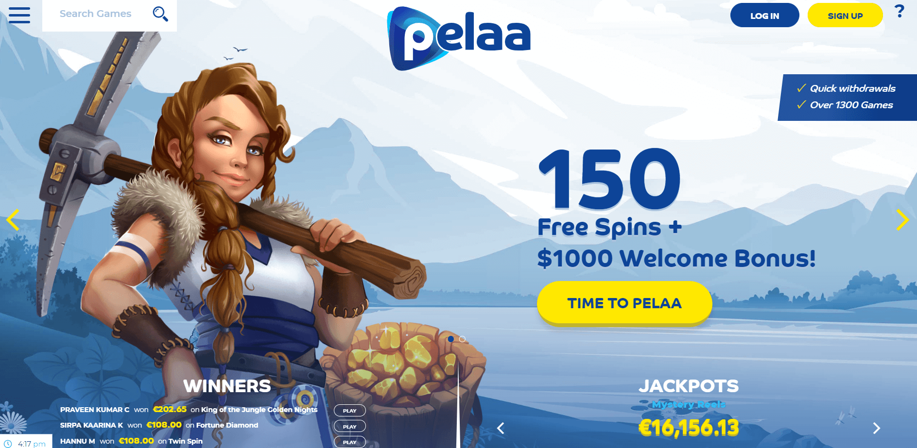 Pelaa casino is good at welcoming their new players. You can get up to a $1000 welcome bonus along with 150 Pelaa casino free spins.
