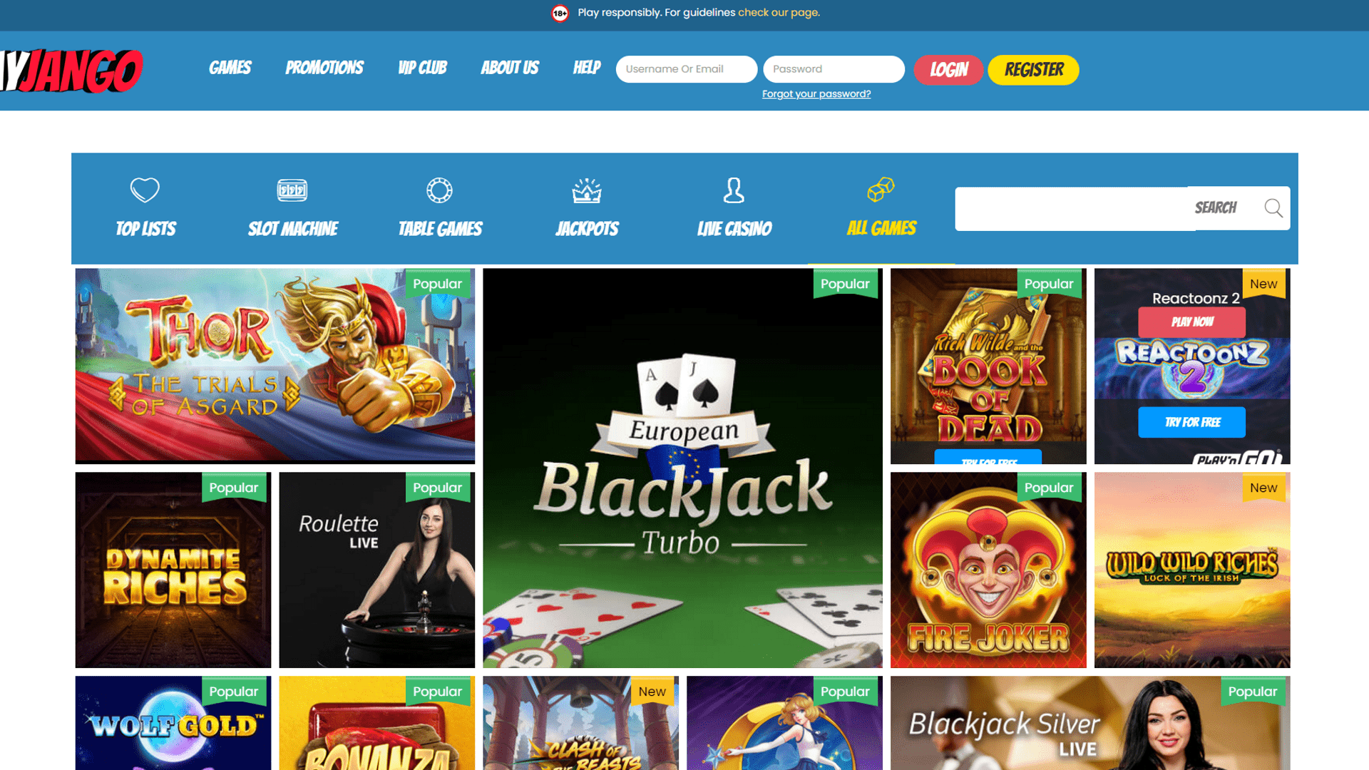 Play Jango is a new casino in the market, but it offers the latest table games and other video slots provided by various software providers. The table games and live casino are very impressive for the players to choose since they guarantee the best experience for the players: