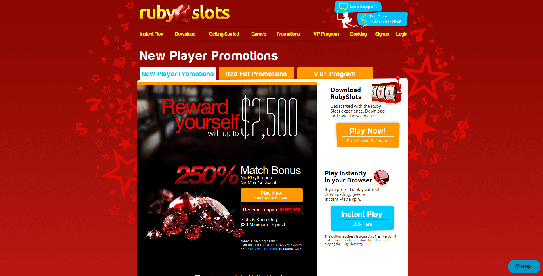 While the specific details regarding Ruby Slots Casino’s free spins are not provided within the welcome bonus package, it’s worth noting that the 250% match bonus allows players to enjoy slot games and Keno, but only after making a minimum deposit of $30. As for the 100% match bonus package, it entails a 30x play-through requirement and a maximum cash-out limit of 10x.
