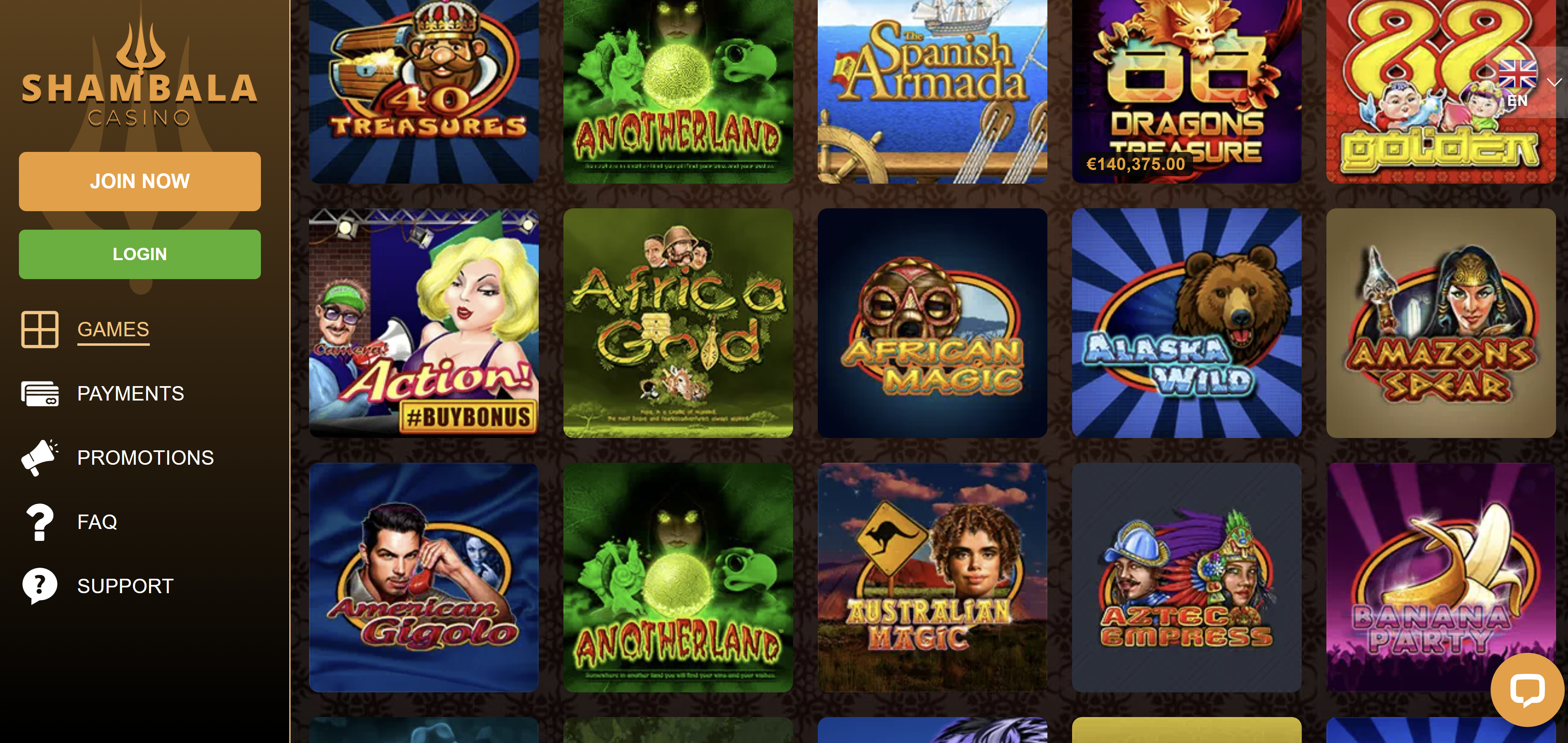 Shambala Casino is a new-age casino that offers over 4000 premium game titles and the best rewards for all types of players. The site promises a safe betting platform and delivers on its promise. Additionally, the site offers promotions, including VIP membership and other exclusive treats for spending time here.