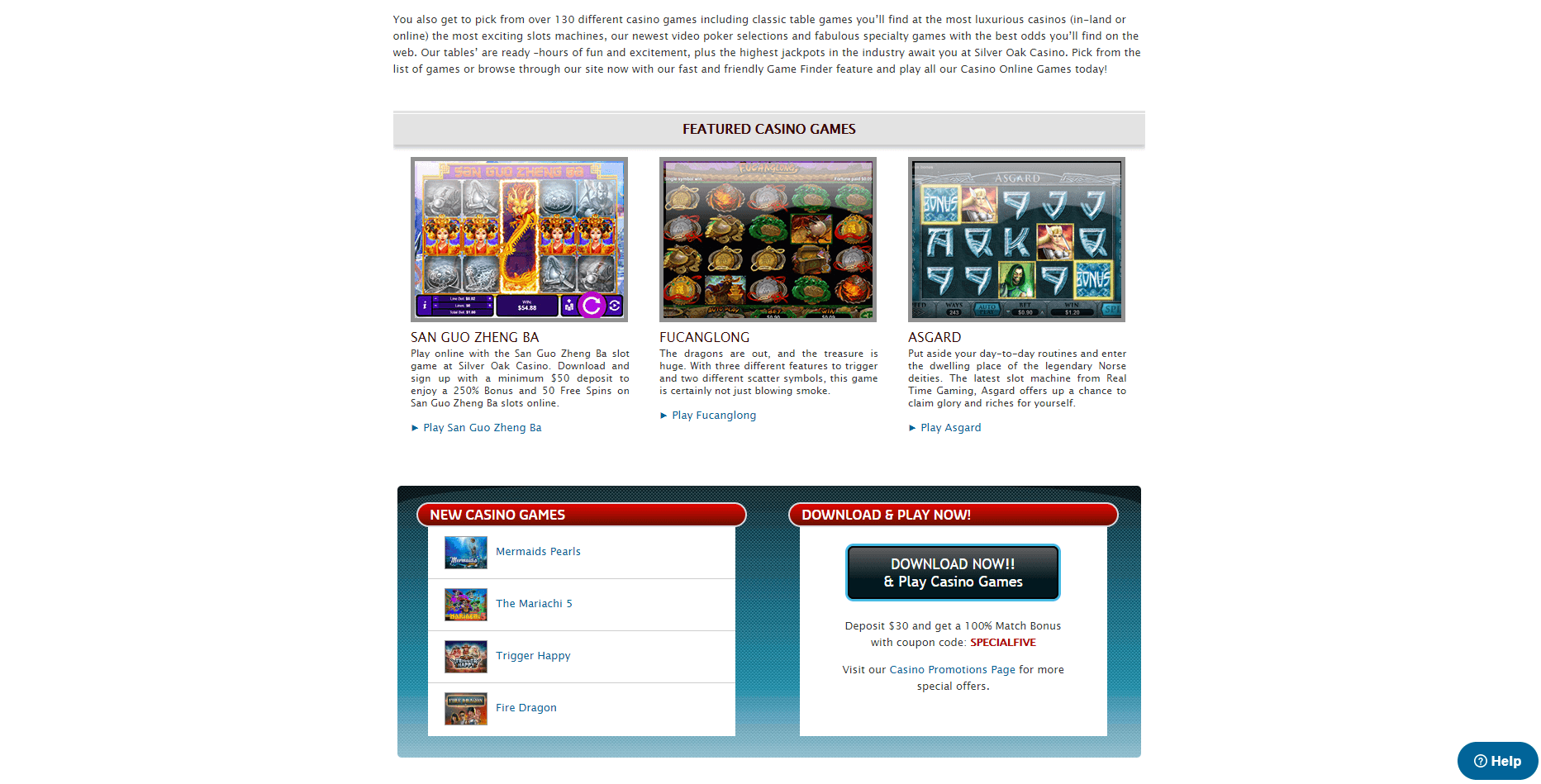 Silver Oak Casino Games Offered