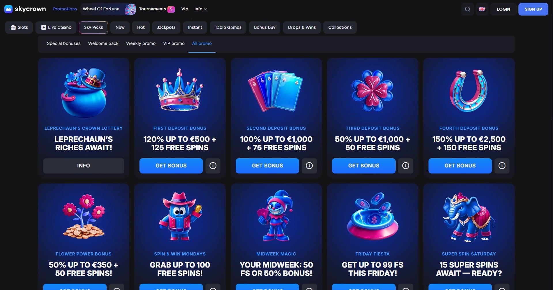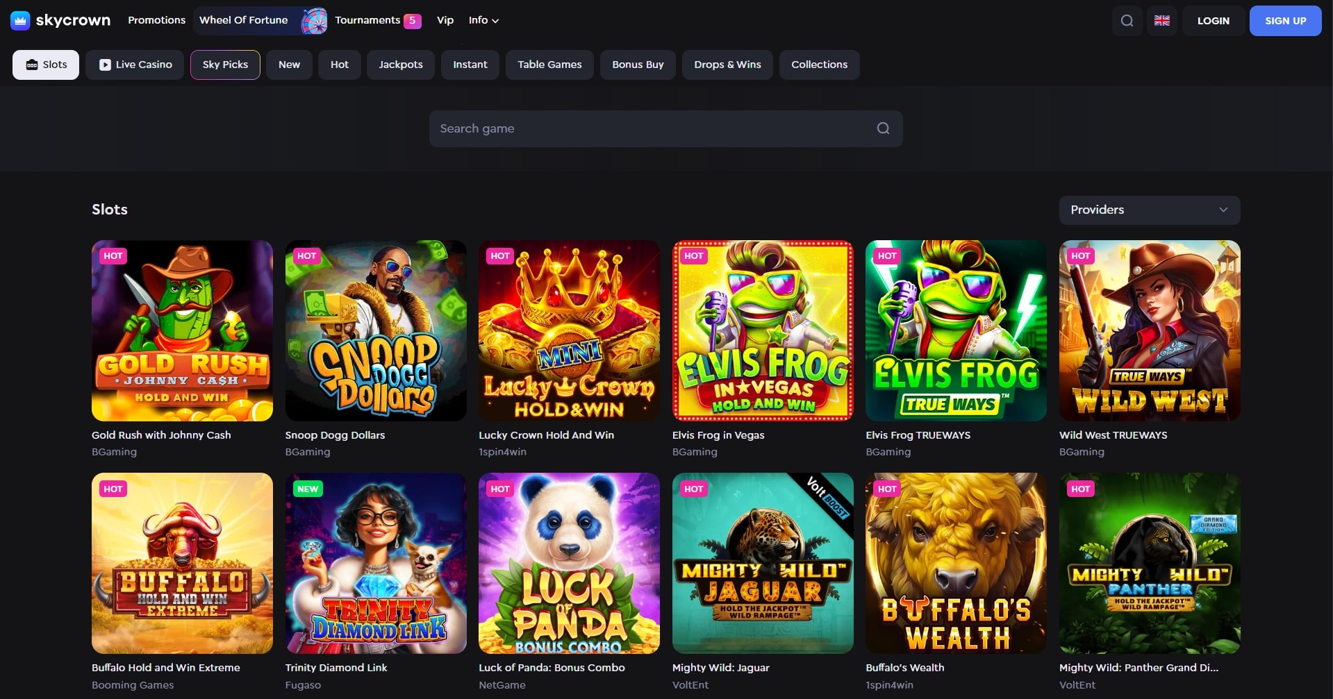 Thanks to extensive partnerships, Skycrown’s game library is both vast and diverse. Expect top studios like: