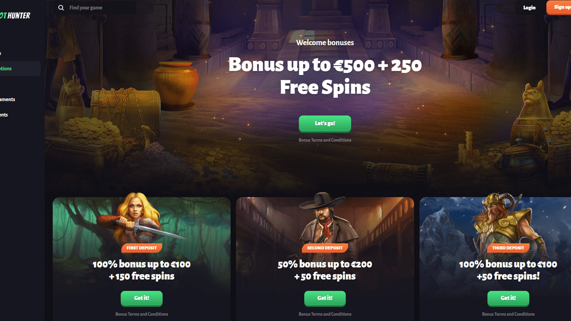 For your second deposit, Slot Hunter Casino continues to boost your account balance with a 50% bonus, up to a maximum limit of 200 EUR. In addition, you’ll also be granted 50 free spins. The bonus codes are not required for this offer. The free spins can be used specifically on the Book of Tut slot game, providing you with additional opportunities to win and explore the game.