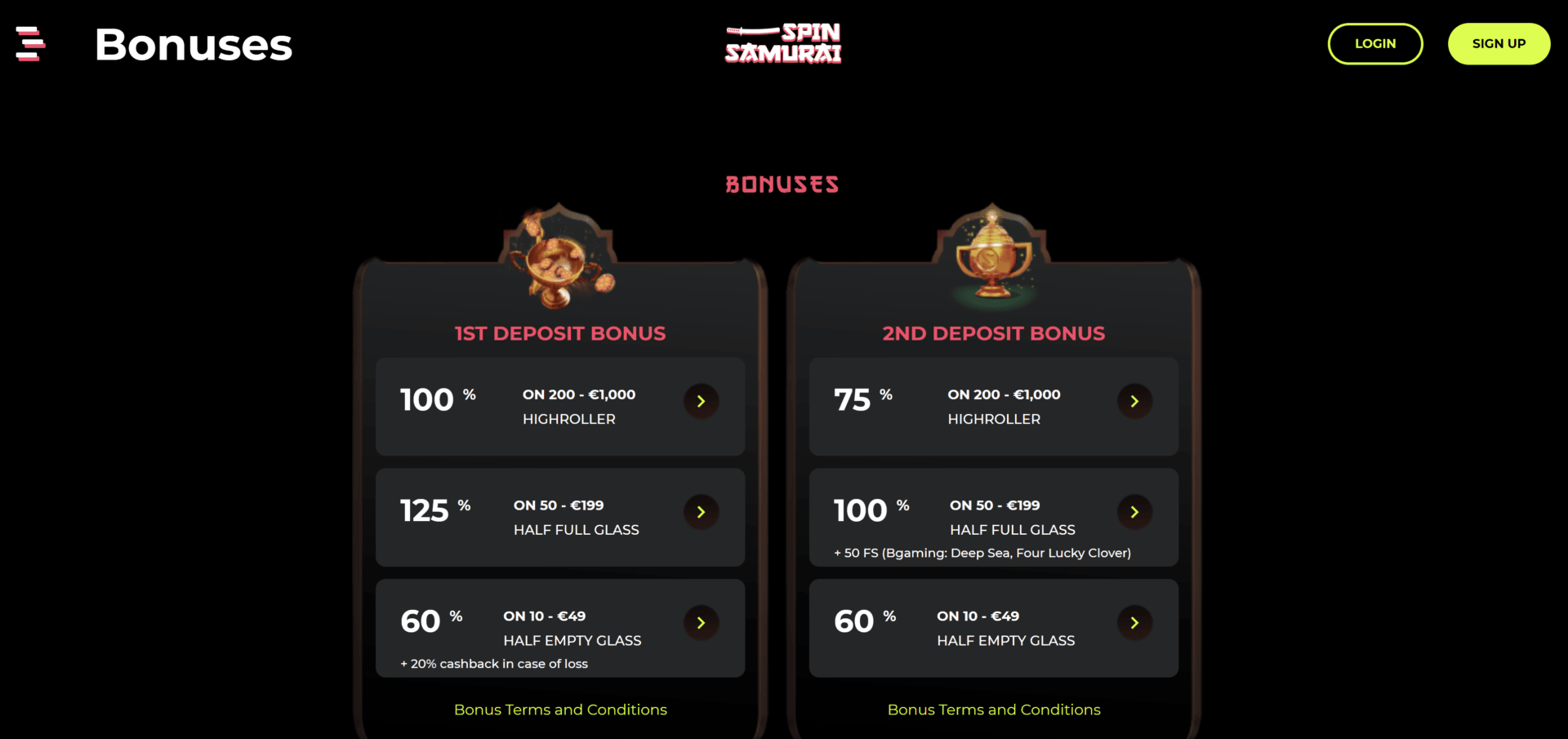 As a newcomer to the gaming arena, you can now claim a much more powerful welcome package at Spin Samurai Casino – up to $5,000 in bonus funds plus 150 free spins across your first three deposits. On your first deposit, you receive a 100% match up to around $650 and 50 free spins on selected slots. Your second and third deposits add the remaining bonus funds and another 100 free spins, giving you a total of 150 Spin Samurai free spins to explore games like Deep Sea or Four Lucky Clover and other featured titles. All parts of the package are subject to standard wagering requirements and time limits, so always check the bonus terms before you start playing.