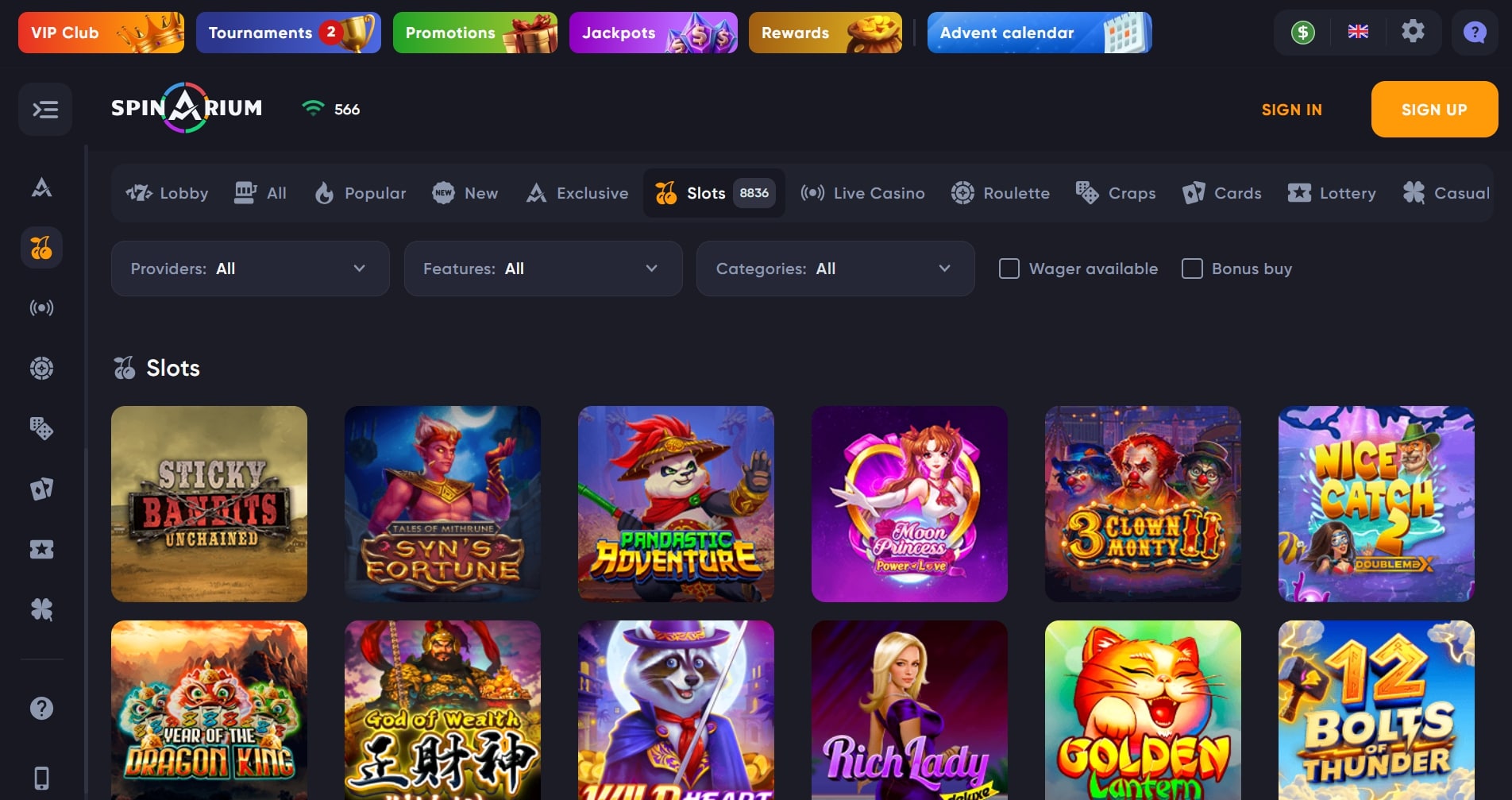 - Exclusive in-house games: Spinarium offers unique, proprietary titles that can only be played on their platform.
