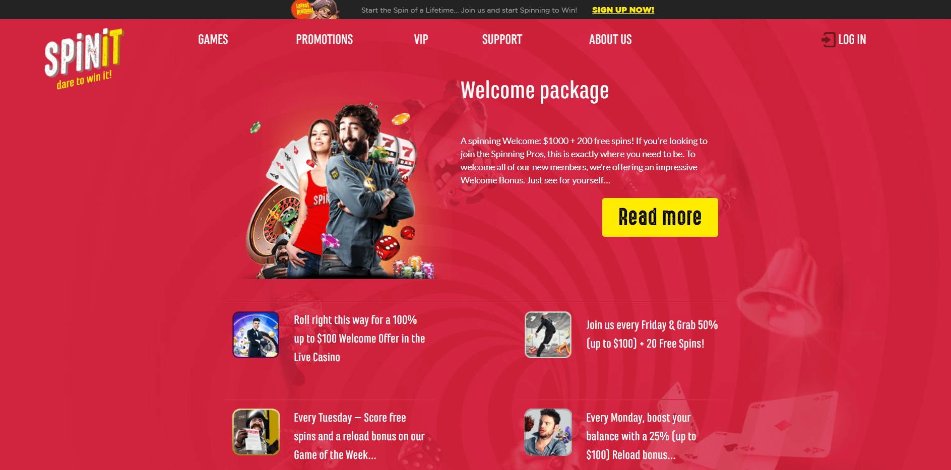 Unfortunately, We must inform you that Spinit Casino has closed down and is no longer in operation.