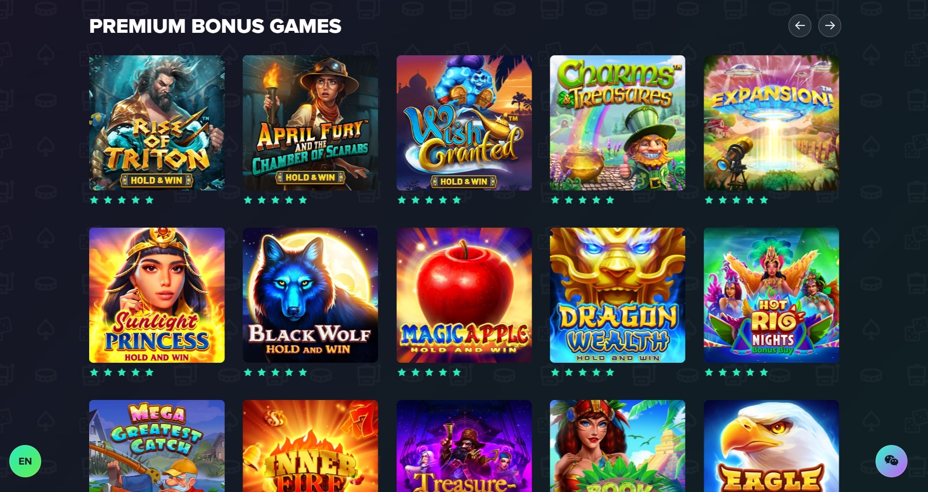 The casino collaborates with some of the most recognized software studios in the industry, promising high-quality gameplay and fair results. Their roster includes: Evolution, BGaming, Pragmatic Play, Microgaming, Playson, Wazdan, Betsoft, Big Time Gaming, Blueprint, Red Tiger, Spinomenal, Nolimit City, … and many more.