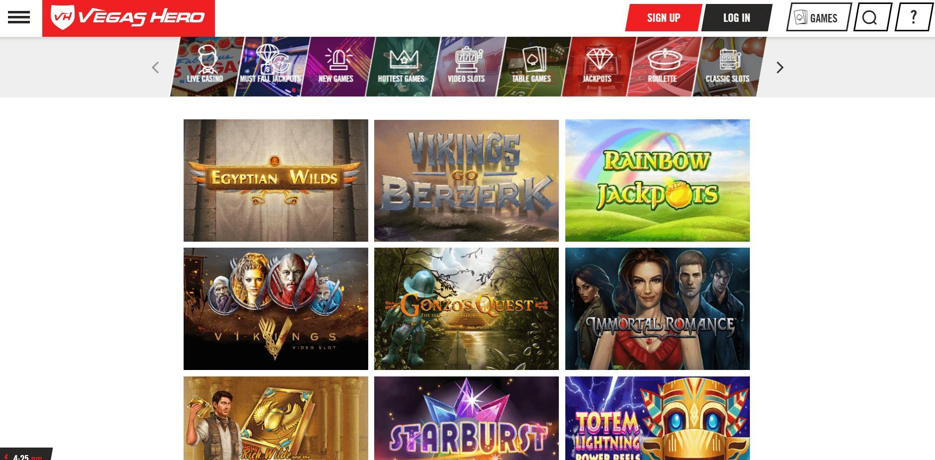 Those who love slots need to check out the Vegas Hero site once. It offers exciting games like Raging Rex, Thunderstruck, Book of Dead, 9 Masks Of Fire, Reactoonz, etc.