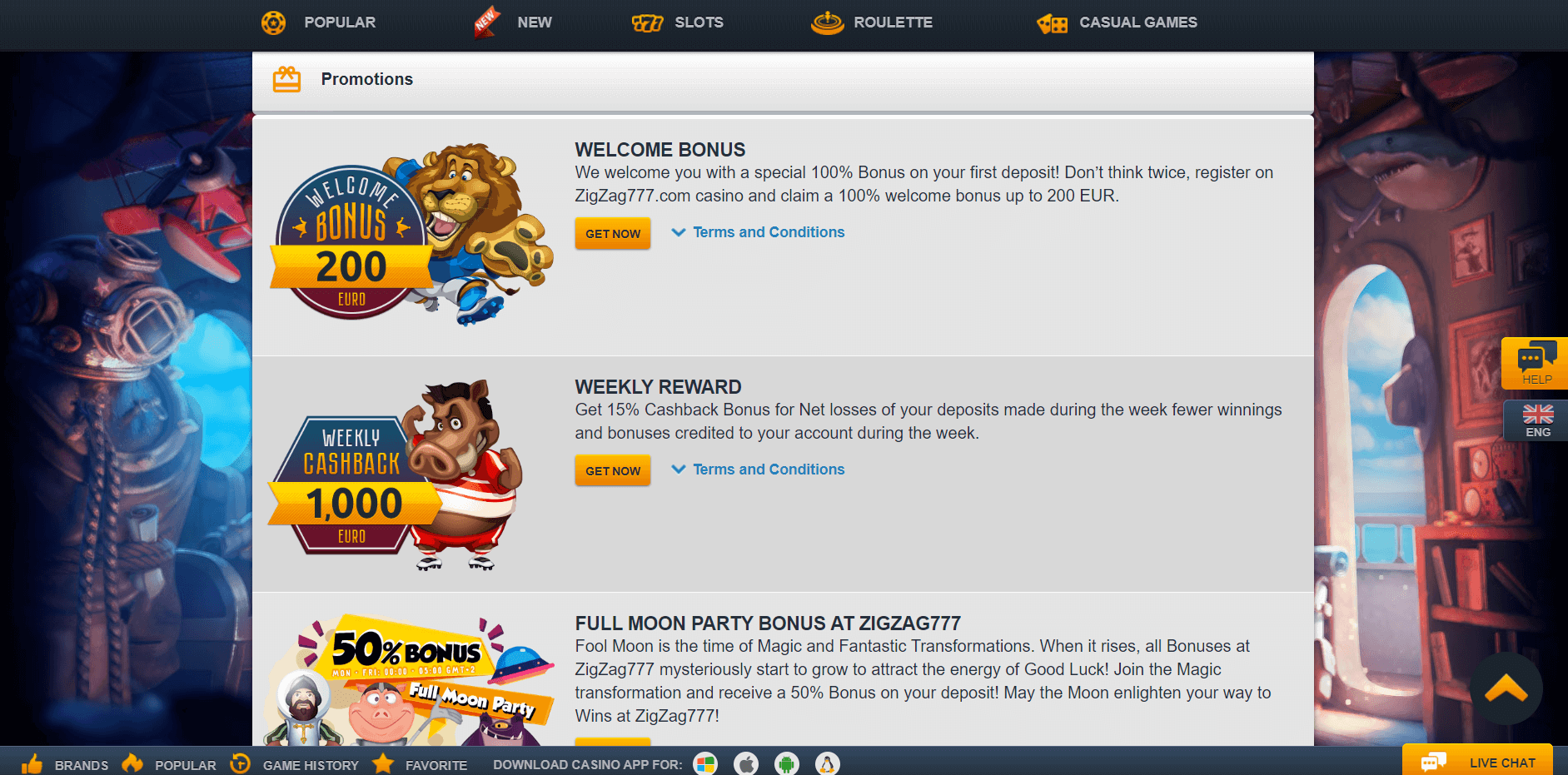 Talking about bonuses, the guys from Zig Zag 777 Casino and other brands regularly send us new no deposit bonuses. However, these offers are normally time limited so we only share them via email.